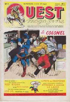 remarques: | série de 6 numéros, bimensuel, 20 pages au prix de 30.- fr principales bandes: - le Colonel par Blasco - Red Ryder par Harmann numéro 3, 1.5.1953 - le colonel par Jesus Blasco - Joe-Jo, shériff de 1ère classe par Martin - Red Ryder (le cavalier rouge) avec Petit Castor + carte sur les principaux champs de bataille des guerres indiennes (1669-1882) + aquarelles au 4ème plat >> commentaires, voir numéro 1 |