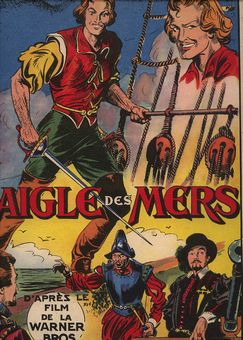 remarques: | cahier grand format cartonné/broché 50% couleur, 50% N&B des Editions Mondiales (Del Duca) avec - l'aigle des mers par Rémy Bourlès (d'après le film) aventure de cape et d'épée - la poursuite éperdue par Rémy Bourlès, aventure d'espionnage - Buffalo Bill par René Giffey n.b. il existe aussi une édition cartonnée, dos rouge, avec en plus un épisode de capitaine Blood par Groux, Brazza le conquérant par Gal + 2 strips de Arthur et Zoé ainsi que de Tom Mix |