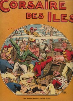 remarques: | un épisode N&B de corsaires dessiné par Etienne Le Rallic avec deux superbes couvertures au 1er et au 4ème plat et 2 planches couleur pleine page au milieu du cahier des aventures de corsaires au prise avec les anglais à nouveau dans l'Océan Indien au service de l'amiral Suffren (le héros maritime français de l'époque) cette fois c'est l'histoire véridique du marin breton François Ripaud de Montaudevert dans les années 1770 >> des récits historiques classiques mais bien dessinés par Le Rallic Information François Fidèle Ripaud de Montaudevert, est un corsaire français, né à Saffré, dans l'actuelle Loire-Atlantique, le 25 mai 1755, et mort le 23 février 1814 à Bayonne, Réunionnais d'adoption, il est célèbre pour ses courses dans l'océan Indien, François Fidèle Ripaud de Montaudevert est le fils de maître Jacques Louis Ripaud, sieur de Montaudevert, notaire et procureur de cette châtellenie, et de demoiselle Françoise Bernardeau son épouse. 1766, embarquement à Nantes sur Le Palmier à l'âge de 11 ans comme mousse, traversée vers Marseille et Saint-Domingue. 1770, après plusieurs traversées, premier débarquement à l'Île-de-France (île Maurice) 1784, il se marie le 20 janvier 1784, à Saint-Denis de La Réunion, avec Jeanne Françoise Bouyer du Broussais, descendante de colons de l'île Bourbon, le ménage s'installe à Saint-André. 1793, Ripaud obtient une lettre de marque et les souscriptions nécessaires pour armer le Volcan pour la guerre de course, malgré la concurrence avec les armements réalisés à l'Île-de-France, il réussit à rassembler un équipage de 148 hommes, son premier lieutenant est Jean-Marie Dutertre de Port-Louis qui deviendra plus tard l'émule et le rival de Robert Surcouf, 1814, Ripaud est mortellement blessé le 23 février 1814, à bord de la Sapho qu'il commandait, lors du Siège de Bayonne anecdote: dans le roman, corsaire de la République, Louis Garneray raconte qu'il a été présenté à Robert Surcouf par Ripaud de Montaudevert. on lui attribue la création d'un "club jacobin" à Srirangapatnam (Inde) auprès du sultan de Mysore: Tipû Sâhib |
