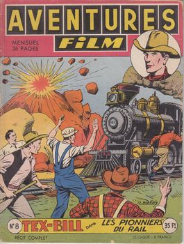 remarques: | Aventures Film no 8 de novembre 1952 premier récit de Tex Bill par Melliès, Tex Bill n'est toutefois encore qu'un ingénieur de la Southern Pacific et est chargé de la sécurité des travaux lors de la construction du chemin de fer + un 2ème épisode par Melliès: escale 7 >> les épisodes avec Tex Bill seront les meilleurs de la série bien que parfois de qualité différente |