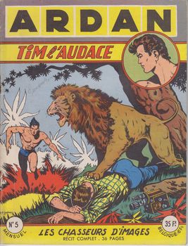 remarques: | numéro 5 de juin 1952 à noter: première couverture avec le médaillon de Tim 1/ Tim l'audace, les chasseurs d'images retour en France à Paris où des amis à lui lui propose un safari africain au Kenya, ce seront des chasseurs d'images >> p. 7 Tim est chez lui et se met dans sa tenue coutumière: un simple pagne 2/ Tom Tempest, Flèche Noire un superbe étalon qui fera gagner Tom au rodeo de New City |