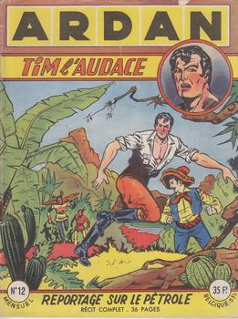 remarques: | numéro 12 de janvier 1953 1/ Tim l'audace, reportage sur le pétrole Tim le reporter retourne à Paris dans les bureaux de son journal appelé Ardan, il est commandité par son directeur pour un nouveau reportage sur les puits de pétrole au Brésil, il reçoit le dénommé "la Puce" photographe, comme compagnon qui deviendra son fidèle assistant par la suite >> p 23/24 en Amazonie, Tim rencontrera une tribu de peaux-rouges, genre Far West n.b. ici et pour quelques prochains numéros, la série propose des aventures éducatives avec le motto instruire en divertissant à noter: le médaillon un peu spécial avec Tim l'audace 2/ Tom Tempest, la mine d'argent |