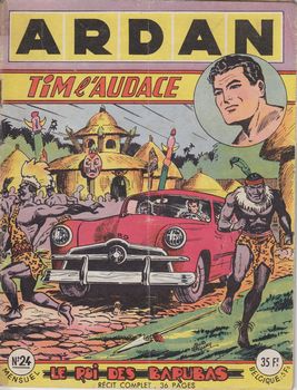remarques: | numéro 24 de février 1954 1/ Tim l'audace, le roi des Barubas >> p. 4 un noir secrètement converti au catholicisme par des missionnaires belges, c'est pourquoi il vient de suite à l'aide de Tim et de ses amis n.b. sur la couverture du numéro, une voiture Ford, les belges roulent américain! 2/ le rescapé du val noir, un récit western signé S.+R. Bourlès (un parent de Bourlès?) |
