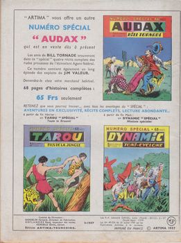 remarques: | numéro spécial de février 1957 1/ dans la série héros du Bengale, la rebellion des sikhs 2/ Roger Lebreton, sur les traces d'une civilisation perdue nouvelles aventures dans la jungle africaine mais avec un très faible graphisme |