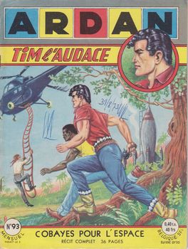 remarques: | numéro 93 de novembre 1959 1/ Tim l'audace, cobayes pour l'espace lancement d'une fusée spatiale depuis la jungle >> p. 12 adieu Salam, nous sommes perdus, mais je ne pensais pas mourir comme Laïka, la chienne du spoutnik dixit Tim dans la fusée 2/ Roger Lebreton, 10 ans dans le Mato-Grosso |