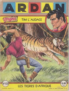 remarques: | numéro 103 de septembre 1960 1/ Tim l'audace, les tigres d'Afrique les tigres mangeurs d'hommes, échappés d'un cirque ambulant 2/ début de Rugha, le nouveau tarzanide |