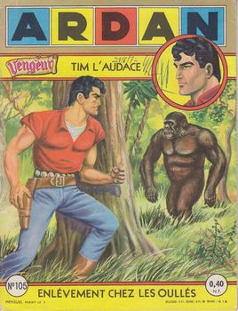 remarques: | numéro 105 de novembre 1960 dernier numéro collectionné 1/ Tim l'audace, enlèvement chez les Oullés après les hommes-léopards et les hommes-panthères, ce sont maintenant les hommes-gorilles 2/ Rugha, l'expédition chez les pygmées Congo pays de mystère, les abeilles bourdonnent, les singes jacassent en jouant mais la nuit venue, les prédateurs épient leurs proies |