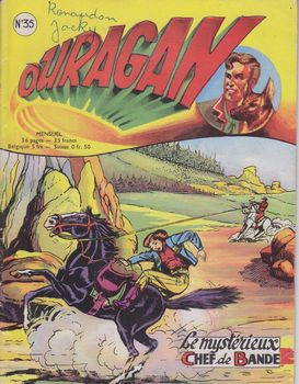 remarques: | numéro 35 de novembre 1957 début de Jim Star, le substitut de Jim Ouragan, le mystérieux chef de bande |