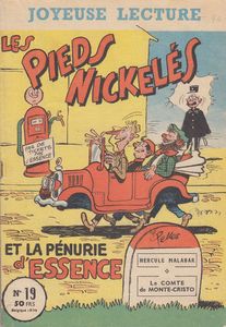 remarques: | cahier no 19 "joyeuse lecture" sur les pieds nickelés et la pénurie d'essence, prix fr 50.- de septembre 1957 paraissant comme périodique de 1956 à 1963, date à laquelle il devient Pschitt Junior comprend - 1 épisode complet sur les pieds nickelés par Pellos lors d'une pénurie d'essence, les pieds nickelés cherchent des substituts pour gagner facilement de l'argent, notamment des carburateurs qui marchent à l'eau et des puits de pétrole bidons - 1 épisode complet de Hercule Malabar et sa douce moitié par Gérard - 1 épisode à suivre du "comte de Monte-Cristo" >> petit périodique sans prétention qui dura tout de même 7 ans, mentionné ici à titre représentatif de la série, mais avec une couverture assez bien exécutée |