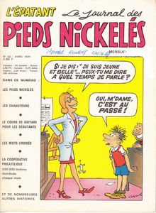 remarques: | no 63 d'avril 1967 prix 2.50 82 pages, suite de Pschitt Junior parait de 1964 à 1976 avec des bandes de Pellos et de Matt, prenant le titre de l'Epatant-journal des Pieds-Nickelés en 1969 comprend - 1 épisode à suivre des Pieds-Nickelés qui sont mêlés à une bande de malfaiteurs dans une base secrète dont le chef est une femme, la blonde Donna (qui ressemble quelque peu à Durga Rani), ils seront délivrés par la marine italienne mais recherchés par la police française - 1 épisode à suivre des aventures de Charlot par Matt Charlot à l'armée comme cavalier et fantassin - 1 épisode à suivre: le chasseur de daims, récit probablement repris de Mondial Aventures - Mathurin à l'école, récit humoristique - les aventures des Pieds-Nickelés par Forton reprise des premières aventures des Pieds-Nickelés qui rançonnent de riches promeneurs dans le bois de Fontainebleau et sont mêlés à des affaires de fausse-monnaie >> p. 74/75 Croquignol qui est cuisiné par la police >> un petit journal sans prétention dont le rédacteur en chef est Jacques Veissid, scénariste des nouvelles aventures des Pieds-Nickelés Information il y eut deux séries du Journal des Pied Nickelés - 1ère série 34 fascicules de 1948 à 1951 première résurrection en fait de l'Epatant après 8 années d'interruption, l'Epatant apparaissant d'ailleurs en sous-titre vers le no 20, agréable journal qui traumatisa pourtant les inconditionnels de Forton, lesquels ne reconnurent plus leurs Pieds-Nickelés dans le dessin plus caricatural de Pellos, se continua sous le titre d'Epatant nouvelle série, bandes principalement dessinées par Pellos - 2ème série 121 fascicules de 1964 à 1976 suite de Pschitt Junior, il absorba l'Epatant 3ème série (petit format) en juin 1969 prenant alors le titre de l'Epatant-Journal des Pieds-Nickelés, bandes principalement dessinées par Pellos, Mat (le brigadier Sagace) et Lacroix (Gugusse) |