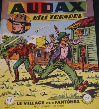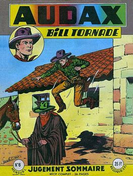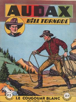 remarques: | reliure des aventures de Bill Tornade comprenant les nos 2,3,4,6,7 à l'origine la reliure comportait le numéro 1, mais celui-ci est manquant numéro 2 de novembre 1952 1/ - Bill Tornade, les tonneaux de Johnny Mac Pherson dans lequel Bill prend le jeune David Stone comme adjoint 2/ le secret de Jim Rubis par Bob Dan (un de ses premiers récits) numéro 3 de décembre 1952 - Bill Tornade, le cougouar blanc (récit complet) numéro 4 de janvier 1953 - Bill Tornade, l'inconnu du désert de Mojave (récit complet) numéro 6 de mars 1953 - Bill Tornade, jugement sommaire (récit complet) numéro 7 d'avril 1953 - Bill Tornade, le village aux fantômes (récit complet) >> des premiers récits de Bill Tornade bien conçus |
