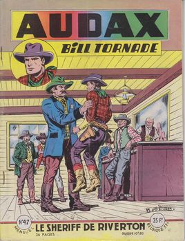 remarques: | numéro 47 d'août 1956 1/ Bill Tornade, le shériff de Riverton n.b. dans la bande dessinée, il y a deux versions de shérif(f): shérif et shériff il semble que la différence réside dans la langue, en français: shérif, en anglais: sheriff 2/ King le vengeur, le village traqué par Lemonnier, le dessinateur de Jean d'Armor >> section album Jean d'Armor |