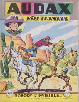 remarques: | numéro 52 de janvier 1957 dernier numéro de la série avec Bill Tornade, les prochains contenant Chico Suarez, un substitut de Bill Tornade étant moins performant et dernier numéro collectionné ici 1/ Bill Tornade, Nobody l'invisible 2/ King le vengeur, King triomphe par Toussaint |
