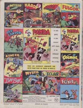 remarques: | numéro 21 de septembre 1955 1/ Tarou, la piste de la soif traversée du Sahara 2/ Moha, le manteau des caïds d'Unyoro, part 2 par Niezab |