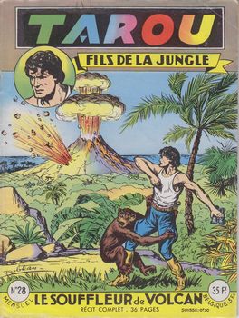 remarques: | numéro 28 d'avril 1956 1/ Tarou, le souffleur de volcan les deux bonzes et leur arsenal atomique 2/ Moha et les gorilles, part 1 par Gosselin |