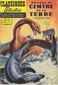 remarques: | fascicule imprimé au Danemark! d'après Jules Verne, voyage au centre avec forêt de champignons géants, monstres préhistoriques, mer souterraine avec tempête et foudre, homme préhistorique, le périple mènera jusque sous la Méditerranée et en on sortira par le volcan Aetna en Sicile >> cahier adapté très librement de Jules Verne, assez bonne couverture |