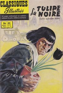 remarques: | d'après le roman d'Alexandre Dumas, dessinateur Alex Blum Hollande 1671, au temps des frères De Witt et de Guillaume d'Orange, où le docteur Cornelius van Baerle cultive des tulipes rares mais il est jalousé par son voisin Boxtel un concours est organisé avec un grand prix pour celui qui fera pousser une tulipe noire, Cornelius réussit mais il est dénoncé par Boxtel comme agitateur politique et arrêté, il finira sa tulipe noire en prison avec l'aide de la fille du geôlier puis sera reconnu innocent et gagnera le prix de la tulipe noire >> un roman plutôt bien adapté mais le graphisme reste faible |