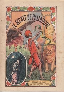 remarques: | genre hybride entre le roman illustré et l'histoire en images, prépublié dans "l'écho du Noël", l'étoile Noëliste et Bernadette", comprend environ 50 récits cartonnés et/ou brochés, illustrés par Damblans (en quadrichomie), avec des textes principalement de Catalany, Colomban, Duverne et Pujo un récit de 104 page qui commence au palais du rajah Mohrô, roi dépossédé de la province de Pallahore dont les deux fils aînés ont péri de la maladie qui étrangle, le vieux paria Pattani, rencontre avec un médecin français qui vient justement pour soigner la maladie qui étrangle (= la diphtérie) et qui avec son compagnon Pierre viennent de recueillir dans la brousse la pauvre jeune Marie, Pierre tombe amoureux de Marie >> p. 9 le voisin du rajah, l'inquiétant pseudo-suédois Vlademar Moorstettin arrivés au palais, les visiteurs sont accordés l'hospitalité mais la jeune Marie s'enfuit du palais, la galerie maudite dans le palais du rajah et la tentative criminelle pour supprimer le jeune fils cadet du rajah ce qui déclanche la curiosité du dr Hallec qui décide de mener une enquête >> p. 13 le domestique chinois Ké-Li-Lô et son chien Labri >> p. 17 l'histoire du dr Hallec et de Pierre de la Logerie en patrouille, Pierre sauve une autre jeune fille, captive d'un groupe de fakirs fanatiques de Kâli >> p. 27 un sauvetage mouvementé >> p. 33(10) en jetant un cri suprême vers le dieu de bonté qui a pitié de ses créatures, on découvre alors que Marie est aussi prisonnière des fakirs >> p. 56(3-4) le sauvetage de Marie qui est cousine du rajah Mohrô et le rôle mystérieux de la jeune cinghalaise Thi-Baï l'histoire de Marie et de la médaille qu'elle portait toujours sur elle, représentant la Vierge Marie et l'enfant Jésus qui l'ont protégée et gardée de tout péril selon le dr Hallec, les allemands sont capables de tout et Moorstettin est certainement un allemand qui veut mettre main basse sur le trésor de Pallahore et qui est prêt à tout pour atteindre son but: prendre possession du palais en éliminant ses propriétaires >> p. IV-4 combien plus douce et plus belle et plus pure était l'image de la Madone que les statues hideuses vénérées par les Hindous dans leurs temples finalement le trésor de Pallahore est découvert et Moorstettin trouve la mort en essayant d'éviter son arrestation >> le graphisme ne change guère mais le scénario est vraiment un peu naïvement religieux et sans grand originalité et le trésor servira à rendre plus grande la pompe des cérémonies qui exalteront l'unique dieu! n.b. à noter: une belle couverture au 1er plat et au 4ème plat le signe de Bonne Presse regnum tuum (qui n'apparaîtra plus dans les prochains cahiers) note sur Myriam Catalany: Marie Barrère-Affre, née le 31 juillet 1885 à Perpignan (Pyrénées-Orientales) et morte le 23 juillet 1963 à Collioure (Pyrénées-Orientales), est un écrivain de langue française, spécialisée dans les romans pour enfants et sur le Maroc, Marie Barrère-Affre a aussi publié sous différents pseudonymes, dont notamment Myriam Catalany, avant son mariage, elle signe Marie Affre ou Violette des Pyrénées, son pseudonyme, très tôt les productions chez Gautier-Languereau (La Semaine de Suzette), puis les romans cinématiques sont signés Myriam Catalany - Marie la Catalane, elle est "Flâneuse" dans le journal marocain L’Atlas qui paraît à Marrakech, dans certains feuilletons du Pèlerin, elle se cache derrière Gineste (ou Ginette) de Cosprons, Marie Régis Falandry (nom de sa grand-mère maternelle), est sûrement Marie, ce Tamelelt qui signe un Brumaire et Messidor dans la Croix des Jeunes en 1935 |