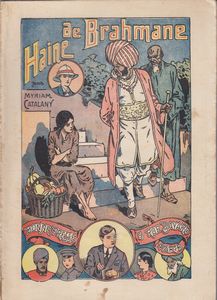 remarques: | édition 1931, genre hybride entre le roman illustré et l'histoire en images, prépublié dans "l'écho du Noël", l'étoile Noëliste et Bernadette", comprend environ 50 récits cartonnés et/ou brochés illustrés par Damblan (en quadrichomie) avec des textes principalement de Catalany, Colomban, Duverne et Pujo ce cahier no 19 est la suite du cahier no 16 "les aventures d'André Chérance" Ier épisode/ Namouna à Benarès, René de Mauvran s'intéresse à une misérable petite marchande de fruits, esclave d'un prêtre brahmane, mais celle-ci après avoir été réconfortée par René, disparaît à nouveau affamée, la petite marchande Namouna est recueillie par Savitri, amie d'André Chérance, devenu André de Boisemont, par la suite, Namouna retourne chez son maître Talmouz, au quartier des pêcheurs, qui l'enferme en voulant la conduire chez le grand prêtre brahmane qui ne veut pas que Namouna ait du contact avec des hommes blancs tel René de Mauvran, mais Namouna réussit à s'échapper et se retrouve dans le temple de Rama où un homme solitaire la prend en hospitalité IIème épisode/ Savitri le vieux Talmouz rend compte au chef brahmane Alikhan de l'évasion de Namouna mais lui fait croire qu'elle est morte dans sa fuite, totuefois, sans le savoir, il s'avère que Namouna est la soeur de Savitri et Alikhan retient leur mère Kaleri prisonnière parce que celle-ci est devenue chrétienne, entretemps après des recherches Savitri retrouve son oncle, le sultan de Pallahore >> p. II/8 l'asile Parvâti où Savitri s'occupe d'une petite fille bien malade: Oraddou, fille du sahib Arrami, serviteur d'Alikhan, Oraddou était une petite martyre, humble compagne de souffrance de Jésus le crucifié, Savitri avait entrepris de lui enseigner le catéchisme et Oraddou ne cessait d'implorer le baptême qui la ferait enfant du bon Dieu IIIème épisode/ les princes de Chobour à bord du "Narval" les deux hommes Pierre de Vanvers et André de Boisemont voyageaient vers les Indes pour revoir Savitri tandis que le jeune René de Mauvran pensait toujours à la petite Namouna, celle-ci toujours dans le temple de Rama est introduite par l'homme solitaire dans la religion de Marie et Jésus, Namouna avec son chien recueille le vieux Talmouz, son maître, qui a été torturé par les brahmanes pour avoir laissé échapper Namouna, Talmouz lui révèle que l'homme solitaire est en fait son vrai père, le rajah de Chobour qui avait échappé à un empoisonnement causé par la caste des brahmanes >> III/9 la religion chrétienne qui interdit de brûler les morts de son côté, Alikhan achète une maison soi-disante hantée, le Pavillon Rouge, pour y commettre de curieux méfaits, tentative de meurtre par Alikhan sur René de Mauvran qui se retrouve à l'asile de Parvâti et qui croit reconnaître Namouna en la personne de Savitri (en fait Namouna et Savitri sont soeurs jumelles) IVème épisode/ deux petites soeurs René retrouve Namouna dans le temple de Rama avec son père alors que Savitri reste sous protection par peur d'un enlèvement; de leur côté André de Bosemont et son ami réussissent à localiser la princesse Kareli grâce à un chapelet jeté de la fenêtre de sa cellule et parviennent à organiser sa fuite Vème épisode / Providence >> p. V/4 image de moi-même: la rencontre des deux soeurs mais la petite Oraddou expire après avoir vu son père et lui avoir fait promettre de se convertir au christianisme tout le monde retrouve tout le monde et l'on fêta le bonheur retrouvé par un grand pélérinage à Lourdes, bonheur que Dieu dans toute sa plénitude leur avait donné >> un récit catalanyen avec des ramifications assez complexes mais qui ont souvent le même thème sans grande variation et avec bien sûr une influence toujours très catholique, Catalany semble avoir une préférence pour les récits qui se passent en Orient, notamment aux Indes et ce 19ème épisode n'est pas le pire avec une bonne couverture d'album |