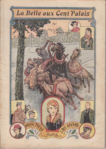 remarques: | édition sd (1933), genre hybride entre le roman illustré et l'histoire en images, prépublié dans "l'écho du Noël", l'étoile Noëliste et Bernadette", comprend environ 50 récits cartonnés et/ou brochés illustrés par Damblan (en quadrichomie) avec des textes principalement de Catalany, Colomban, Duverne et Pujo 1/ la belle 1913 le palais russe où se déroule une fête en présence du prince Paul Orbélianoff, sa femme Catherine et leur fille Nadine qui fête ses onze ans mais qui est déjà une fille très capricieuse, dispute entre Nadine et sa gouvernante Mathilde qui avec son frère Henri décide de quitter par traîneau en pleine nuit d'hiver le palais Orbélianoff 2/ les cent palais lors du trajet en traineau, Mathilde et Henri ont un accident et doivent tous deux se faire soigner, ils recoivent les excuses de Nadine qui a été sermonné par son père qui décide pour son éducation de l'envoyer dans un pensionnat à Paris, la guerre éclate alors en Europe 3/ heures de douleur durant la guerre, le pensionnat de Mlle Jeunaisse déménage dans le sud de la France, Nadine est devenue une jeune fille agréable >> p. 1 changement d'attitude: elle est aussi devenue catholique de coeur et n'ignore rien de cette belle et consolante religion! il lui tarde de revoir ses parents mais à cause de la guerre, elle ne reçoit plus aucune nouvelle la Révolution emporte la Russie et la belle aux cent palais se sent bien seule sans nouvelle de sa famille, Nadine devient une personne sans ressource et doit travailler chez Mlle Jeunaisse dans le service du pensionnat pour payer son gîte et son étude, c'est alors que Nadine rencontre par hasard Mathilde et Henri, établis aussi dans le sud de la France mais Henri doit partir servir son pays >> p. 9 les amertumes: Salomé, la grosse juive, se montre odieusement arrogante envers Nadine qui est faussement accusée d'avoir volé le collier de perles de Salomé, Nadine avec son amie Rosario sont chassées du pensionnat 4/ Dieu veille à Wachtung, dans un camp de prisonniers, le soldat français Henri rencontre en piteux état l'officier russe Paul Orbélianoff, mais déjà les amis d'Orbélianoff préparent son évasion en Russie, la princesse Catherine avec son enfant Irène doivent fuir la révolution, heureusement elle est aidée par des serviteurs avec qui elle s'est toujours montrée juste et charitable, elle réussira à embarquer sur un bateau en direction de la France 5/ la fin de l'épreuve Nadine et Rosario sont recueillies par Mathilde, un peu plus tard Rosario retrouve son père qui a fait fortune en Amérique et Nadine retrouve aussi son père arrivé en France avec Henri après avoir subi plusieurs épreuves par la suite Catherine et la petite Irène retrouveront aussi leur famille et Nadine, devenue une personne très complaisante, épousera le brave Henri >> p. 10 réunis: le pélérinage à la chapelle de l'Ermitage où tout ce petit monde se retrouve et chante ensemble le cantique despedida (les adieux) durant lequel Nadine et Rosario se sentent vraiment bénies de la Vierge et de Dieu, tandis que la vieille Russie expire dans les horreurs d'un cataclysme >> à nouveau un récit très moral et très catholique de Catalany qui ne change guère ses thèmes, celui-ci étant sans grande originalité mais avec une assez bonne description des évènements |