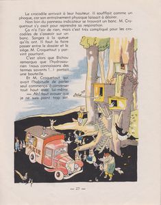 remarques: | 32 pages, 50% couleur 50% quadrichromie n.b. couvertures légèrement frottées mais intérieur en parfait état Bichou et son chien Toucky partent à la recherche de Martine, une petite fille qui aurait été enlevée, durant leur trajet, les deux compagnons arrivent au royaume des animaux où règne le bon roi Félix DXI >> p. 8 la petite vendeuse avait confondu le mouchoir de dame girafe avec le drame de mademoiselle taupe >> p. 30 M. Porkonoir, directeur propriétaire de l'hôtel de la Fontaine après quelques mésaventures dans le pays des animaux et grâce au bon service d'un fakir, la petite fille sera retrouvée et selon Bichou tirée des griffes d'une tigresse mal léchée >> une petite histoire enfantine avec les fameuses illustrations du grand Saint-Ogan, surtout intéressant de par le graphisme de St-Ogan, un cahier plutôt rare et bien côté |