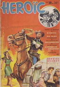 remarques: | fascicule du 19.6.1953 - Kinowa épisode V (résumé voir no 67) - film "le monde lui appartient" avec Gregory Peck - roman-illustré "Gil Blas" - service secret (fin) - Raoul et Gaston - un épisode de Jim Cameroun |