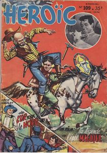 remarques: | fascicule du 5.10.1954 - Kinowa épisode VIII (résumé voir no 106) - film "l'épée magique" - série "destination lune" (fin) - roman-feuilleton "enlevé" - RC: de l'or pour le nord information le masque de Kinowa aurait été de couleur verte selon un indien combattant Kinowa (planche 109/7) et selon la rédaction d'Heroic, Kinowa aurait réellement existé au Far West au temps lointain des terribles luttes contre les indiens et les hors-la-loi (page 26) |