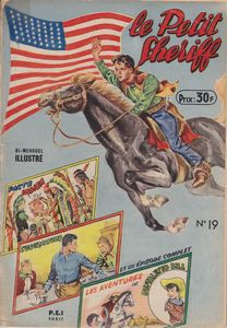 remarques: | numéro 19 du 12.3.1951 les aventures de Kit 1/ pacte indien Kit prêt à être mis au poteau de torture, en s'emparant d'un fusil, abat un condor qui veut enlever Keroe, le jeune fils du chef, Plume Noire devient alors l'ami de Kit qui sera surnommé Petit Puma >> p. 5 Kit qui remercie Dieu de l'avoir sauvé mais qui ne néglige pas de donner une forte gifle à un enfant indien si nécessaire entretemps Ted l'astucieux, prend, après l'avoir éliminé, l'identité d'un immigrant allemand et se présente à sa famille comme un parent éloigné, la jeune fille Sybille se prend d'amitié pour lui, mais lors d'une promenade à cheval, Sybille tombe dans un torrent et est sauvée par Kit 2/ l'usurpateur Ted se trouve bien dans cette famille, mais il commence à y semer la discorde note: les récits du petit sheriff commencent à être mieux étoffés - film-feuilleton: le mustang noir - un épisode de Buffaletto Bill, histoire semi-comique d'un jeune cowboy qui veut imiter Buffalo Bill |