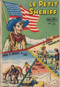 remarques: | no 33 du 10.10.1951 les aventures de Kit 1/ dans le désert de sel mission spéciale au Mexique avec les agents fédéraux Georges et Gilda >> p. 3 le chapeau tyrolien de Gilda, attaqué par les Creeks, le trio s'en sortira, mais se fera dérober leurs bagages par les indiens, et pour échapper à d'autres attaques, ils décident de traverser à pied età cheval le dangereux désert de sel 2/ le singe évangéline dans le désert de sel, le supplice de la soif avec la folie qui guette et les mirages qui disparaissent >> p. 14 Kit est encouragé par l'esprit de son père, le fameux Hodkin, et complètement épuisés, ils seront sauvés par le chirurgien-dentiste Nicomède et son singe-compagnon Evangéline, mais à nouveau agressés par des indiens séminoles cette fois - documentaire: la Hollande - récit complet: les cygnes d'or (premier récit complet assez intéressant, auteur inconnu) |