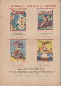 remarques: | fascicule no 4, 11 titres parus au 4ème plat, février 1950 au prix de fr 50.- à Hollywood, séance de cyclisme et au cinema, la critique est très favorable à Oscar un 4ème larron s'ajoute à la ménagerie de tante Zulma: un singe tandis que celle-ci prend des leçons d'anglais, production d'un film sur la jungle, tante Zulma devient la tigresse blanche >> p. 25 Zulma dans le rôle de Tarzane invités pour une croisière dans les mers du sud par un magnat de la publicité, nos amis deviennent maintenant explorateurs >> p. 37 tante Zulma qui joue à Robinson Crusoe >> pas de grand changement, toujours un bon graphisme et un scenario assez amusant avec un texte bien réussi |