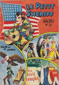 remarques: | no 35 du 9.11.1951 les aventures de Kit 1/ Gilda et le lépreux menacée de la lèpre, Gilda est mise en quarantaine dans un couvent, alors que Kit continue la mission en emportant des documents secrets, mais il est déjà pourchassé par un régiment de l'armée mexicaine >> p. 6/7 la fuite aérienne de Kit (tele-benne et condor) 2/ Kerekoo déposé par le condor, Kit est salué par un groupe de peaux-rouges qui le considère comme un dieu venu du ciel, il devient leur chef sous le nom de Kerekoo, mais le sorcier ne veut pas le reconnaitre comme chef et fait défier Kit par son neveu "bras de fer" dans un combat singulier >> p. 14/15 le duel au lasso le combat gagné, Kit entraîne ses guerriers à combattre les mexicains n.b. un épisode assez intéressant de Kit, le petit shériff - film-feuilleton: mission dangereuse (fin) - récit complet: la belle au bois dormant (un récit intéressant dessiné probablement par Devi) |