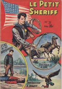 remarques: | no 31 du 10.9.1951 les aventures de Kit 1/ course à l'or les frères White périssent dans un incendie, Lisa persuade Kit de participer à une course à l'or (40 km en chariots) pour délimiter les claims à laquelle participe aussi un amputé d'une jambe avec sa fille Dana 2/ l'or et les brigands tous les coups sont permis et deux brigands prennent part à la course, Kit laisse le premier claim à Dana et prend le deuxième, mais il se fait piéger par les deux outlaws qui remplacent les piquets de Kit par les leurs et s'octroie le claim de Kit, mais celui-ci ne se laissera pas faire - documentaire: l'Espagne (Andalousie et Valence) - récit complet: Noureddin le marin (référence à Sinbad) |
