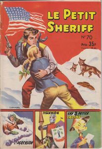 remarques: | no 70 du 25.4.1953 les aventures de Kit 1/ l'agression Kit décide d'accompagner les convoyeurs jusqu'à Denver, lieu de destination; tous les trois arrivent dans une région très enneigée avec une terrible tempête, en cherchant du secours, Kit tombe dans le piège dressé par Burst et Jolly qui s'emparent du chariot et qui abandonnent Kit et ses amis dans le froid et la neige n.b. intéressant de savoir comment les bandits ont pu faire rouler le chariot que Kit, Honey et Mae n'arrivaient plus à faire avancer réveillés, Kit et ses amis se réfugient dans une grotte pour échapper aux loups 2/ sauvés des loups enfin débarrassés des loups, Kit, Mae et Honey rejoignent le prochain patelin pour apprendre que Brust et Jolly ont continué leur marche en achetant un traineau et des chiens, mais la discorde règne déjà entre Burst et Jolly, toutefois après bien des difficultées, ils arrivent au camp des chercheurs d'or n.b. malgré quelques anomalies, un bon épisode de Kit avec un bon graphisme (sous la neige) - film-feuilleton: au mépris des lois - série Ivanhoé (**) - nouvelle série comique: les trois petits lapins (Spaghetti, Froussinet et Tremblotte) contre Tchou Tchou le chinois et Sgrafignat le renard |