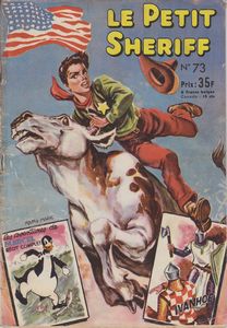 remarques: | no 73 du 10.6.1953 les aventures de Kit 1/ repentir Kit rejoint Montana Jack mais celui-ci par erreur blesse sa fille d'un coup de revolver puis regrettant son acte, il se constitue prisonnier et espère qu'il gagnera le pardon de Dieu >> p. 3 les voies du seigneur sont impénétrables de retour à Prairie Town, Kit entre dans un saloon dévasté par Bull, un énergumène qui ne connait pas sa force, il est accompagné de son ami et protecteur Mike et de Sandy, une personne peu recommendable qui provoque souvent Bull pour l'exciter >> p. 5 à trois sur un cheval 2/ Sandy le traître après une bagarre entre Bull et Sandy, celui-ci est copieusement rossé et abandonné par Mike et Bull, Kit aide Sandy à se rétablir, celui-ci profite de l'occasion pour accuser faussement Mike et Bull d'un meurtre, Kit part à leur recherche après avoir confié Sandy à sa soeur Lisa, mais entretemps Sandy en profite pour neutraliser Lisa et son chien Roki et pour dérober leurs économies >> p. 11 l'imprudence de Lisa qui bavarde beaucoup trop (n.b. on apprend cette fois que le petit shériff gagne bien sa vie) de retour avec Mike et Bull pour les confronter avec Sandy, Kit est surpris des agissements de Sandy - film-feuilleton: au pays de la peur avec Stewart Granger - un épisode d'Ivanhoe - les aventures comiques de Marcel le pinguin |