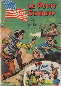 remarques: | no 95 du 8.5.1954 les aventures de Kit 1/ étrange cérémonie les peaux-rouges sont vaincus grâce à l'intervention du soldat Paul qui regagne l'estime de ses chefs, il sera décoré de l'étoile du mérite tandis que le petit shériff est nommé chevalier du mérite civil n.b. beaucoup de décorations dans cet épisode un jour que Kit nettoie son étoile à la rivière, il se la fait dérober par un oiseau >> p. 4 Kit qui lave son étoile de shériff qui est tout entachée en poursuivant l'oiseau, Kit tombe sur une secte dirigée par le vénérable qui est en train de punir une jeune fille, Kit intervient, mais durant son action, le vénérable est assassiné et les membres arrêtent Kit qui ne peut se justifier d'être un shériff car il n'a plus son étoile 2/ fuite de Robin Kit est délivré par un inconnu, après quoi Kit mène son enquête avec son collègue le shériff de New City, tous deux soupçonnent Robin, le fiancé de Peggy, fille de l'assistant du vénérable qui ne voulait pas que Peggy marie Robin - film-feuilleton: la taverne des révoltés (suite et fin) - récit complet: Kyushu, l'île de porcelaine - récit complet comique: Top le lièvre |