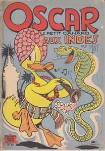 remarques: | cahier broché EO, 4ème PUB Pschitt, au prix de Fr 80.- (corrigé 100.-) (s) = marque de scotch invisible au dos et à la page de garde le trio vient de gagner un premier prix = un voyage aux Indes >> p. 6 tante Zulma = femme-sandwich pour la publicité >> p. 10 les hindoux, li parlent comme li pitits nègres >> p. 12 le milkbar aux vaches sacrées Oscar est fait prisonnier par un pêcheur pour remplacer un vieux cormoran dans les états de Cepaparla et Savakomsah, tante Zulma est destinée à épouser le maharadjah de Kara-Melmou >> p. 25 le conteur électrique des mille et une nuits >> p. 27 l'ordre de l'éléphant blanc la grâce potelée de Zulma qui subit une cure d'amaigrissement avec son futur mari le maharadjah >> p. 43 malgré la révolution, le trône du maharadjah tient bon mais Zulma et Josette sont devenues des "intouchables", finalement le trio reprendra le chemin de la France >> un cahier rafraîchissant, un scénario cocasse et toujours un bon graphisme, surtout pour les illustrations couleur n.b. un cahier dédié beaucoup à la publicité (y compris Perrier mais pas Pschitt!) |
