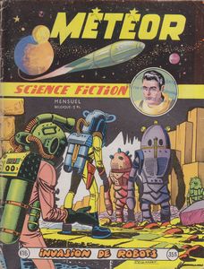 remarques: | no 16 de septembre 1954 prochain arrêt sur la planète Vulna peuplée par une civilisation semblable à celle des terriens l'histoire des vulnariens controntés aux methols, des créatures de métal, genre robots, invulnérables sauf à l'énergie thermique >> p. 10 description d'un méthol Spencer et Cie constatent toutefois qu'ils résistent, contrairement aux vulnariens, mieux aux rayons projetés par les methols, ils découvrent le repaire des méthols qui sont dirigés par un savant fou vulnarien, frappé d'amnésie qui veut devenir le maître de Vulna >> p. 25 l'usine de fabrication et de réparation des méthols après avoir mis hors d'état et soigné le savant, les terriens détruiront les méthols grâce à un wimp, genre de char blindé muni d'un puissant canon thermique >> aventure assez banale et un des premiers fascicules qui comportent des robots, curieusement ce fascicule est un des fascicules les plus côtés dans le BDM (Euros 40.-) avec les numéros 13 et 19 |