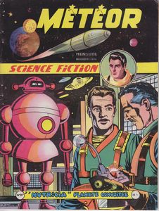 remarques: | fascicule no 27 d'août 1955 atterrissage sur la planète Séca, pays de sécheresse où deux nations (Mirdal et Barlok)se font la guerre pour la possession de l'eau, les terriens trouveront une nouvelle planète où les habitants de Séca pourront émigrer cette planète contient même une atmosphère composée d'un gaz nutritif (elle sera appelée Nutricia) mais celle-ci est déjà peuplée de chiens et de chevaux intelligents qui ne veulent pas se soumettre aux nouveaux immigrants et quand une nouvelle race (les zyrcaniens) veulent aussi conquérir cette planète, les animaux se soulèvent contre eux >> p. 20 les zyrcaniens avec leurs coiffures fourchues finalement les zyrcaniens ne bénéficiant pas sur leur physique des propriétés nutritives nécessaires pour vivre sur la planète décideront de quitter Nutricia sur laquelle vivront en paix humains et animaux >> un épisode pas trop mal imaginé |