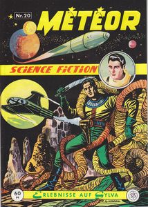 remarques: | deutsche Ausgabe Nr. 20 Meteor publiziert von Titan Verlag Preis Deutschland 60 Pfennig, Schweiz 70 Rappen exemplaire sans date (1959) traduction fidèle à la version française sauf quelques exceptions >> p. 10 je veux être changé en saladier traduit par "ich müsste Lohnerhöhung haben" >> p. 21 de l'essence traduit simplement par "Flüssigkeit" les bulles dans les images sont aussi moins bien intégrées que dans l'édition française et le graphisme est vraiment de moindre qualité (photocopies?) bref, peut satisfaire quelques lecteurs allemands mais il est plutôt conseillé aux fans allemands de Meteor de prendre des leçons de français! information 1/ Titan Verlag / Walter Lehning Verlag De janvier 1958 à août 1959, les 22 premiers fascicules sont édités par la maison d'édition Titan et distribués par Walter Lehning, le grand homme des comics et de la presse populaire en Allemagne, à Hannovre (Basse-Saxe), le format est très proche des fascicules Artima de l'époque: 23,5 cm x 17 cm, l'impression est excellente: il ne s'agit pas de copies des fascicules français, les originaux (ou les films) semblent avoir été mis à la disposition de la maison d'édition allemande (n.b. mais le graphisme ne peut égaler l'édition française) la traduction en allemand est très fidèle au texte original, seul le lettrage laisse à désirer (caractères "journal") (voir plus haut) . ces fascicules reproduisent dans la forme leurs homologues français: mêmes couvertures colorées, même qualité de papier et même nombre de pages les huit premiers numéros français ne comportant que 20 pages et étant d'un format plus petit que les suivants (22 cm x 16 cm), l'édition allemande leur attribue les 36 pages "classiques" au format signalé ci-dessus la bande est donc complétée par deux séries à suivre: le "le Club des Aventuriers" (4 pages) et "Fulguros" de Brantonne et Lortac ces fascicules paraissent toutes les 4 semaines et coûtent 60 Pf. cette série est très recherchée, par exemple, le dernier numéro à l'état neuf se négocie à 120 Euros (début 2006), alors que son homologue français cote 25 Euros (en 2007), http://www.titan-verlag.de (ne publie plus de bandes dessinées) 2/ Norbert Hethke Verlag en décembre 1980 et en août 1981, la maison d'édition Hethke (Hannovre) réimprime les 10 premières aventures dans deux luxueux volumes cartonnés de 23,5 cm x 16,5 cm le volume 1 contient les histoires 1 à 6 et le volume 2, les histoires 7 à 10 six recueils étaient annoncés, mais seuls les deux premiers virent le jour la qualité d'impression est plutôt bonne; la reliure, la couverture pelliculée et le papier sont excellents, de janvier 1995 à octobre 1996, des fac-similés des 22 fascicules précédemment parus sont alors mis en vente et étaient toujours disponibles chez l'éditeur jusqu'en 2008 à partir de 40 euros pour la série complète, le format est cependant différent: 24 cm x 17 cm et la qualité d'impression souvent déplorable, Le site http://www.hethke.de (spécialisé dans la réimpression de bandes dessinées des années 50 et 60, particulièrement celles éditées à l'époque par Walter Lehning) n'existe plus, sombre présage… 3/ Comic Club Hannover (CCH) à partir de février 1995, CCH (Eckhard Friedrich et Bernhard Maas) édite la suite des aventures du docteur Spencer, les originaux ayant été découpés par Arédit pour la réédition de Météor en petit format dans Cosmos, l'éditeur allemand doit se contenter de copier des fascicules français en circulation dans le commerce le résultat est excellent ou médiocre selon les numéros; le lettrage est généralement tout-à-fait adéquat, actuellement (2011), CCH est arrivé au numéro 107 (correspondant au numéro 109 français), les 2 numéros spéciaux ne contenant pas de récits de Raoul Giordan, n'ont pas été édités il est prévu que la série continuera jusqu'au numéro 110 d'Artima (le dernier numéro en grand format) il n'y a pas d'indication de prix, mais il semblerait qu'un exemplaire coûtait 14,80 DM en 1995 actuellement, ces fascicules se négocient entre 3 et 12 Euros selon les numéros ceux-ci sont cependant tous disponibles chez CCH, contactez (en allemand) Bernhard Maas: les numéros 1 à 84 coûtent 4 euros, les numéros 85 à 107 (2011) coûtent environ 10 euros d'autre histoires publiées par Artima sont également traduites, les neuf numéros de Kosmos reprennent des histoires publiées dans Monde Futur Ray Comet, série d'origine espagnole, dans Cosmos, a droit à une traduction et une mise en couleur en 1995 dans la série "Klassik Sonderheft" (édition limitée n° 17, 19,80 DM): "die Nomaden von Ixchor" Atome Kid, rebaptisé Hyperman après s'être appelé Atom Kids, voit quelques horribles planches publiées dans 4 fascicules (édition limitée et numérotée), la publication ést stoppée alors que l'histoire en cours n'est même pas terminée ! Comic Club Hannover, Postfach 2051 - 30020 Hannover (pas de site web) |
