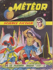 remarques: | fascicule no 48 d'avril 1957 notre trio est envoyé sur la planète Lambda où l'on est sans nouvelle du bagne 117 et où se trouve aussi le laboratoire expérimental du prof Maskovitch à leur arrivée, les terriens constatent que les bagnards se sont mutinés, ils ont détruit les radios et avec leur chef ils sont partis pour un refuge sur une autre planète après avoir confié la garde du prof Markovitch à un complice Markovitch est un biologiste de renom, inventeur du rayon Vita qui a la propriété de conférer aux cellules vivantes une quasi-immortalité mais il a aussi la faculté de provoquer une croissance démesurée, c'est ce qui arrive à Marcus, son gardien, qui a manipulé par inadvertance les produits de Maskovitch Marcus devient un géant et brise une fenêtre pour s'échapper ce qui causera aussi l'écoulement de microbes géants qui se répandent en un torrent gélatineux hautement toxique >> p. 12 les microbes et autres bactéries qui envahissent la planète après avoir retrouvé le prof Markovitch, Spencer et ses amis fabriqueront avec Markovitch des globules blanches géantes qui détruiront les microbes, ensuite on s'occupera de Marcus qui, capturé au moyen des pistolets paralysants, retrouvera sa taille par le rayon Omicron nouvellement inventé >> p. 25 mais au lieu de sa taille normale, Marcus devient presque cette fois un nain et à son retour le chef des mutins sera aussi arrêté >> un récit un peu microbolant! mais une couverture bien faite |