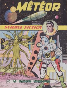 remarques: | fascicule no 49 de mai 1957 la planète "Erratus" menace la terre, elle a été ainsi nommée car elle se meut dans l'espace de façon incohérente et elle se dirige actuellement directement sur la terre Spencer et ses compagnons recoivent la mission de détruite Erratus avec une bombe atomique K surpuissante mais une organisation étrangère veut s'emparer d'Erratus pour faire chanter les nations terrestres et nos amis subissent de nombreux sabotages avant de s'embarquer >> p. 5 le trio Spencer qui fait de l'auto-stop Spacegirl arrivera toutefois la première sur Erratus, nos amis y découvrent une planète désertique avec une cité moderne mais une population qui vit sous-terre Spencer s'arrangera avec le roi Tarvok pour détourner la planète Erratus de sa trajectoire vers la terre mais entretemps de nouveaux arrivants, des êtres de construction végétale, venus de la planète Xilia, débarquent sur Erratus >> p. 26 les drôles de créatures de Xilia >> p. 29 ces hommes-plantes sont un sujet d'émerveillement pour les terriens mais munis d'un courant électrique contraire aux terriens, leurs rencontres soulèvent bien des problèmes, néanmoins Spencer trouvera une solution et réussira à arranger un compromis entre les xiliens et les mirgamiens (habitants d'Erratus, en fait la planète Mirgam) >> p. 34 Texas qui veut élever des chats-plantes et des chiens-plants >> et leur devoir accompli, les terriens continuent leurs merveilleux voyages interplanétaires qui leur réservent encore de nombreuses surprises, une couverture assez originale pour ce fascicule |