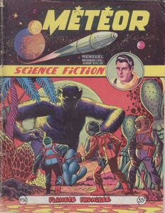remarques: | fascicule no 56, décembre 1957 en vue de la planète Xanthia, une planète inexplorée mais favorable aux terriens selon l'analyse du Touring Club Interstellaire, celle-ci est peuplée d'étranges créatures: tétards et grenouilles géants ainsi que des singes de grande taille nos amis (qui ont laissé Gilda cette fois sur la Terre) y rencontrent le maître de la planète, un savant mégalomane qui veut produire une humanité à la taille et à l'intelligence décuplée et qui a mis au point un processus de supercroissance "le sérum grandisseur Super 597" >> p. 12/13 l'histoire du savant fou Simpson qui s'est échoué il y a longtemps sur Xanthia avec sa femme et sa fille sa femme décédée, Simpson est resté seul sur la planète avec sa fille Stella et maintenant il veut capturer un terrien pour lui inoculer son sérum à titre d'expérience, son choix se porte sur l'infortuné Texas qui heureusement sera délivré par Stella qui est en désaccord avec son père après avoir neutralisé le savant et combattu des fourmis géantes, nos amis repartent vers de nouvelles aventures en prenant Stella à bord de leur fusée Space Girl II pour l'emmener sur notre vieille terre dispensatrice de vie et de sentiments proportionnés à l'humble échelle humaine >>> un récit tout à fait dans la moyenne |