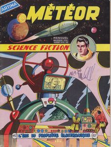 remarques: | fascicule no 63 de juillet 1958 au départ de la planète Tem, récemment découverte, nos amis astronautes recoivent en langue Interspok de la part de certains savants des visions futures de destruction >> p. 6 la machine à prévoir, un prophète électronique et en effet, quelque temps plus tard, la planète Tem est menacée par une invasion de sidériens, des êtres batraciens à tête humaine >> p. 11 le transmuteur, un appareil qui transforme la matière en énergie et vice-versa les terriens préparent la défense de la planète avec le peuple témir, leurs appareils modernes rendus hors d'usage par le rayon violet des sidériens, les témiriens mettent en fonction de vieux avions à essence qui échappent au contrôle des sidériens et ils utilisent leur transmuteur pour approcher les fusées ennemies et les détruire >> p. 20 Texas qui "égorge" des sidériens!! après bien des mésaventures, le peuple témir avec l'aide de leurs alliés terriens réussissent à vaincre les sidériens en diffusant de fausses nouvelles grâce à leur prophète électronique et malgré l'arme de contamination bactériologique employée par les sidériens après avoir accompli leur tâche, les trois explorateurs des univers lointains s'élancent à nouveau dans l'infini des espaces sidéraux où il reste à découvrir encore tant de mondes nouveaux et non moins étranges >> un fascicule pas trop mal imaginé, tout comme la couverture |