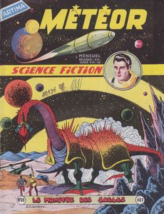 remarques: | fascicule no 69 de janvier 1959 en exploration sur une planète inconnue dont la surface n'est qu'un désert de sable, le trio terrien rencontre un robot qui les conduit à une cité abandonnée >> p. 7 rencontre avec l'affreux et dangereux dragon des sables qui résiste aux armes des terriens puis ce seront des hommes-chasseurs préhistoriques montés sur un genre de dromadaires qui s'enfuient à leur approche et finalement ils trouveront un peuple civilisé qui vit dans une sphère volante étanche >> p. 11 l'histoire de la planète ravagée par des éléments dévastateurs ce qui a causé un climat désertique en attendant de dégager leur fusée enfouie dans le sable, nos amis terriens s'employeront à détruire le démon des sables qui couvent maintenant des oeufs géants >> p. 24 le monstre qui protège son nid et après avoir dérobé un oeuf qui se révèle practiquement indestructible, nos amis trouveront le moyen de faire disparaître le dragon des sables et sa progéniture après quoi, ils s'efforceront de faire règner la paix entre les primitifs et les civilisés >> p. 14 le combat de Texas avec le colosse primitif en utilisant des prises de jiu-jitsu et le coeur satisfait, les terriens repartent vers d'autres mondes inconnus >> assez bon récit avec un monstre plutôt original et bien dessiné sur la couverture |