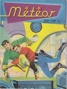 remarques: | fascicule no 97 de mai 1961 changement de couveture pour les fascicules Meteor: nouveau bandeau de titre et le titre de l'histoire n'apparaît plus sur la couverture n.b. bandeau de titre moins recherché que les précédents (raisons d'économie?) à nouveau deux épisodes avec le dr Spencer 1/ le congrès ne s'amuse pas le dr Spencer est invité à une réunion de scientifiques sur un astre artificiel, mais une menace terroriste plane sur cette conférence 2/ les hommes de pierre de Gwaldin sur la planète Gwaldin, les explorateurs terriens découvrent un cimetière de statues de pierre, ce sont des travailleurs récalcitrants qui n'ont pas obéi à leur maîtres et qui ont été condamnés à la pétrification bien entendu, l'équipe du dr Spencer y rémédiera >> pas fameux fameux pour ces épisodes sous nouveau bandeau |