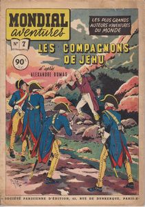 remarques: | album broché, 48 pages, 50% couleur 50% noir&blanc, prix fr 90.-, état en TBE (intérieur parfait) mais légèrement scotché sur le 1er plat (scotch invisible) à noter: sur le 4ème plat est mentionné comme no 9 le loup des mers qui n'a jamais paru roman d'Alexandre Dumas 1803-1870 adaptation de George Vidal, illustrations de René Giffey en 1799 vers Avignon, une bande de partisans royalistes, les compagnons de Jéhu (Jéhu était un roi d'Israël sacré par Elisée sous la condition de punir les crimes de la maison d'Achab et de Jézabel, Jéhu représentant ici le roi Louis XVIII), rançonne l'argent du gouvernement alors que Bonaparte revenu d'Egypte regagne Paris incognito l'un des compagnons, Charles Morgan, aime Amélie, la soeur de Roland de Montrevel, aide-de-camp de Bonaparte, par l'entremise de Montrevel, Morgan, masqué, fait parvenir à Bonaparte un message de Louis XVIII l'incitant à réinstaller sur le trône un roi de France, Bonaparte refuse puis la guerre continue entre Bleus et Blancs, les compagnons de Jéhu dévalisant le trésor de Berne destiné à Bonaparte et convoyé par la diligence venant de Genève (via Avignon?), Bonaparte charge Montrevel de mettre fin aux activités des compagnons de Jéhu Montrevel tend alors un piège aux compagnons de Jéhu, il fait courir le bruit d'un important convoi d'argent en route pour le Mont-St-Bernard mais Morgan réussit à déjouer le piège, Montrevel se lance alors à sa poursuite avec la gendarmerie >> p. 17 le repaire des compagnons de Jéhu Montrevel réussit à trouver le repaire des compagnons de Jéhu, ceux-ci sont arrêtés et condamnés à mort, aidés par Amélie ils tentent de s'échapper mais sont abattus par un escadron de dragons de la République, Morgan y trouve la mort mais à cette nouvelle Amélie meurt de désespoir >> p. 47 la mort de Morgan et p. 48 celle d'Amélie >> un scénario plutôt intéressant mais surtout de superbes illustrations de Giffey avec une jolie couverture |