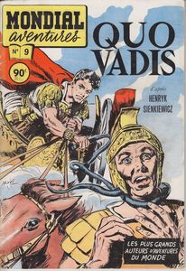remarques: | album broché, 48 pages, 50% couleur 50% noir&blanc, prix fr 90.- Mondial Aventures reçoit une nouvelle couverture d'album avec pleine image (sans cadre) adaptation du célèbre roman de Henryk Sienkiewicz 1846-1916 qui écrit surtout des romans sur l'Antiquité et la Pologne, adaptation et illustrations par Novi >> récit en trois épisodes: 1/ le retour des légionnaires 2/ la croix brisée 3/ l'incendie de Rome Rome au temps de Néron, début du christianisme, persécution des chrétiens à qui Néron attribue l'incendie de Rome, retour de Marcus Vinicus de sa campagne en Bretagne, Pétrone poète de Néron et Tigellinus, chef de la garde prétorienne, Agrippine et Octavie, respectivement mère et épouse de Néron, assassinées sur son ordre, Poppée est la nouvelle impératrice, Lygia, fille adoptive du général Aulus Plautius, qui deviendra finalement l'épouse de Marcus, Ursus le gardien de Lygia, Paul de Tarse = un des apôtres Marcus Vinicus demande à Néron de lui donner Lygia comme otage alors que Actée, une ancienne favorite de Néron devient l'alliée de Lygia mais Lygia est soustraite à Marcus par Ursus, à la recherche de Lygia, Marcus assiste à une assemblée de chrétiens et reste assez impressionné tout en refusant encore de reconnaître le Christ sur la croix pour satisfaire ses passions, Néron fait incendier Rome et en rend responsable les chrétiens, début des persécutions sur les chrétiens >> p. 38 quo vadis domine (question de Pierre en apercevant Dieu sur le chemin de Rome alors que Pierre s'en éloigne) entretemps Marcus se révolte contre Néron, il est arrêté et envoyé aux arènes, il assiste au martyr des chrétiens dont Lygia qui est sauvé par Ursus >> p. 42/43 le combat d'Ursus contre le taureau le peuple se révolte aussi et avec les légionnaires arrivés à la rescousse, Néron doit s'enfuir, il rend Poppée responsable de ses actes et la tue puis se tue lui-même >> une très bonne adaptation du roman de Sienkiewicz tant pour le récit que pour les illustrations |