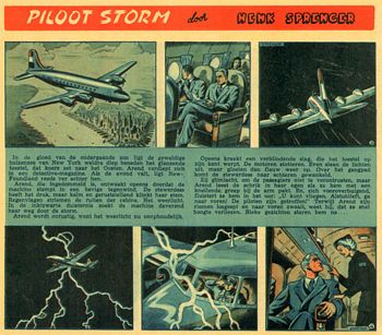 remarques: | fascicule no 9 d'août 1958, premier fascicule avec Pilote Tempête Jacques Tempête avec son bolide Bourdon devient, durant un vol expérimental, l'hôte du capitaine Shor Num de la planète Valéron, premiers combats avec le tyran Zorin >> p. 14/15 suite à un catyclysme, l'histoire du peuple de Titan qui doit émigrer sur la planète Valéron à bord du vaisseau spatial Exodus + un récit neutre: panique à Montreal n.b. dans tous les fascicules, l'épisode avec Pilote Tempête, sera complété par 1 ou 2 courts récits probablement d'origine espagnole annexes - couverture de Spoutnik - extrait d'une édition néerlandaise de Pilote Tempête = Piloot Storm by Henk Sprenger - et son équivalent dans l'édition Artima Information J. Henk Sprenger, né le 3 janvier 1919, mort le 29 décembre 2005, est un auteur néerlandais de bandes dessinées traduites et publiées dans de nombreux pays, séries produites par Sprenger: - pilote Tempête (titre original en néerlandais: Piloot Storm), genre: aventure puis science-fiction, space opera, les tribulations d'un héros, le capitaine Jacques Tempête et de ses compagnons Sandra et Bontemps sur la Terre, puis sur Vénus (Valéron) et d'autres mondes du système solaire, aventures publiées dans les fascicules Dynamic et Spoutnik n.b. les premières aventures de pilote Tempête ont été publiées sous le nom de Bernard Tempête dans Dynamic, du N° 70 au N° 81, par la suite, la série devient alors une BD de science-fiction et le héros va vivre d'interminables aventures en luttant contre le méchant dictateur "Zorin", cette 2ème série étant publiée dans le mensuel Spoutnik avec un développement plutôt intéressant malgré que le texte ait été remanié par rapport à l'édition originale - Kick Wilstra: les aventures et mésaventures d'un jeune footballeur surdoué, le super avant-centre, publié dans le fascicule Olympic n.b. les deux séries principales de ce dessinateur ont été traduites en français mais, chose curieuse, on les trouve uniquement dans les fascicules Artima |