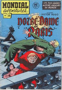 remarques: | album broché, 48 pages, 50% couleur 50% noir&blanc, prix fr 90.- d'après le roman de Victor Hugo 1802 - 1885 scénariste et dessinateur inconnus page de garde: description de Notre-Dame, une des plus belles constructions de style gothique (en fait de style "ogive" = voûte reposant sur les piliers et les arcs-boutants) mais les deux flèches qui devaient surmonter les deux tours ne seront jamais construites c'est un peu l'histoire de la cathédrale sous Louis XI en 1482 avec Esmeralda la bohémienne-danseuse, Quasimodo le sonneur de cloches sourd et difforme (bossu), l'archidiacre Frollo persécuteur d'Esmeralda, le chevalier Phoebus amoureux d'Esmeralda et les truands de la cour des miracles durant la fête des fous où le vainqueur sera celui qui fera la plus laide grimace, c'est Quasimodo qui devient le pape des fous, par la suite, Frollo attiré par la beauté d'Esmeralda veut la conquérir ou la perdre, jaloux il tente d'assassiner Phoebus et ce sera Esmeralda qui en sera accusée et Quasimodo qui la sauvera par reconnaissance pour l'avoir soigné lors d'une flagellation >> p. 25 Esmeralda à la question >> mais la fin du récit ne correspond pas du tout à la fin du roman, un épisode plutôt mal élaboré avec un graphisme qui ne vaut guère mieux (sauf peut'être pour la couverture) |