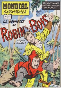 remarques: | album broché, 48 pages, 50% couleur 50% noir&blanc, prix fr 90.- d'après un roman d'Alexandre Dumas 1803 - 1870 illustrations par Kline 1/ page de garde: Angleterre, 1160 sous le règne de Henri II, Robin de Huntingdon indigné du traitement fait au petit peuple, devient justicier contre les tyrans locaux, il mène une guerre de guérilla en se cachant dans la forêt de Sherwood et trouve la mort par trahison, ce personnage aurait existé et sera l'objet d'un véritable culte, sa tombe devenant même un lieu de pélérinage 2/ la jeunesse de Robin des Bois fils adoptif d'un garde-forestier, l'expert-archer Robin Hood rencontre la noble Marianne et son frère et devient leur ami, combat contre des brigands qui se font rosser avec l'aide de deux moines dont l'un, frère Tuck, deviendra le fidèle compagnon de Robin, démêlés avec le sinistre baron Fitz Alwine par la suite, Robin apprend que Fitz Alwine a assassiné son père le comte Huntingdon et qu'il est de descendance noble, il essaye de faire valoir ses droits et récupérer ses biens mais il s'attaque par erreur à des soldats du roi qui le condamne à la proscription, après un dernier combat à Nottingham, Robin et ses compagnons trouveront refuge dans la grande forêt de Sherwood d'où ils continueront leur lutte, il sera alors surnommé Robin Hood ou Robin des Bois >> un roman peu connu de Dumas et un récit peu intéressant tant pour le scénario que le graphisme |